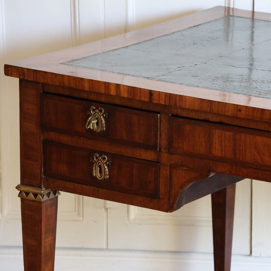 AN ELEGANT, LATE 19TH CENTURY FRENCH WALNUT AND INLAID BUREAU PLAT IN THE DIRECTOIRE TASTE.